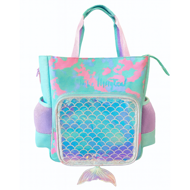 Deniz kızı masalını yanınızda taşıyın! 🧜♀️ Bu göz alıcı pastel renkli sırt çantası; mint yeşili, pembe ve morun büyüleyici tonlarını, ön cepteki parlak pullu tasarım ve 3D kuyruk detayıyla birleştiriyor.