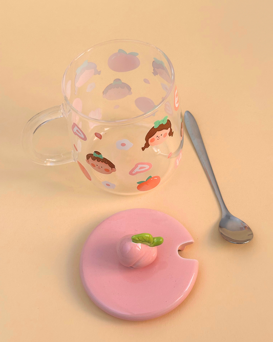 Şeftali Tasarımlı Cam Kupa Bardak