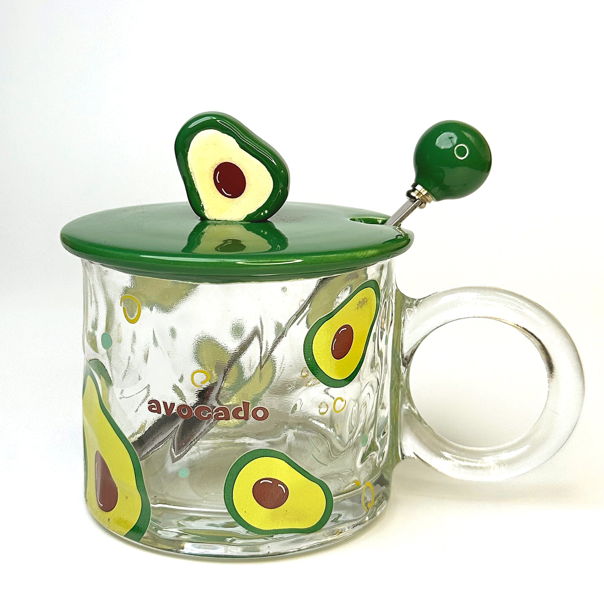 Avokado Tasarımlı Cam Kupa – Kapaklı ve Kaşıklı