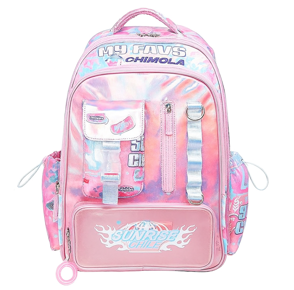 Okulda, seyahatte veya günlük kullanımda yanınızdan ayırmak istemeyeceğiniz Chimola My Favs sırt çantası, pastel pembe-mavi tonları ve parlak yüzeyiyle göz kamaştırıyor ✨.