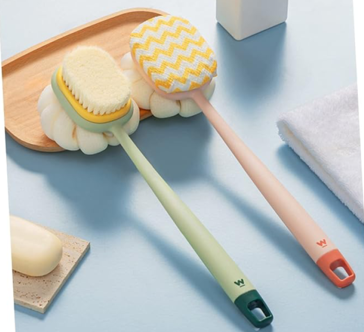 - İki Fonksiyonel Yüzey: Fırça, çok yönlü kullanım için iki yüzeye sahiptir. Bir yüzü nazik temizlik için yumuşak kıllı bir fırça, diğer yüzü ise etkili temizlik için süngerdir. Bu sayede hassas cilt bakımı ve sırt temizliği için idealdir.