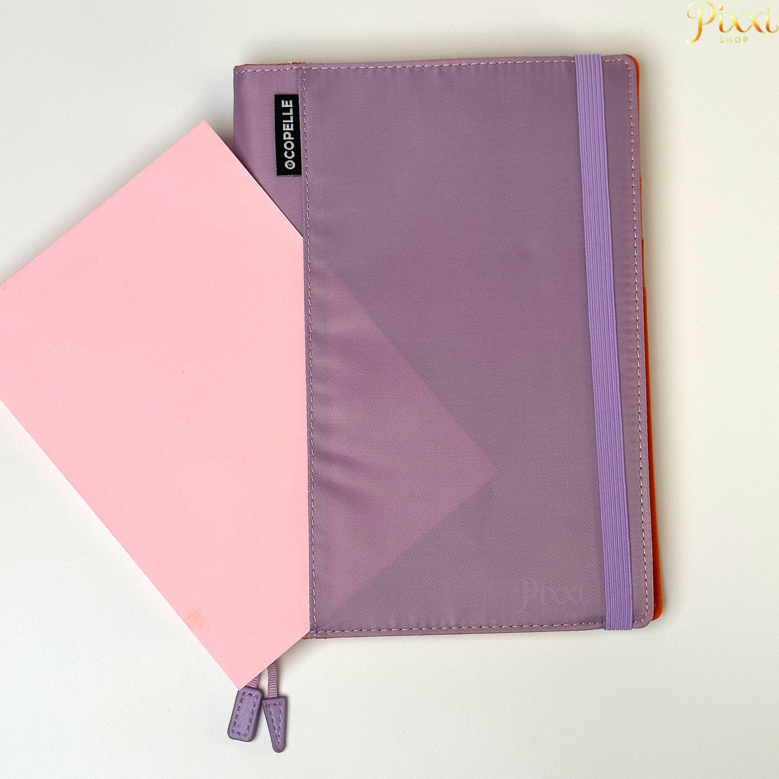 Lila tonlarındaki kumaş kaplaması sayesinde hem estetik hem de elde tutuşu keyifli bir üründür. Elastik lastik bant detayı, defterinizi kapalı tutarak sayfalarınızı korur ve taşıma kolaylığı sağlar.