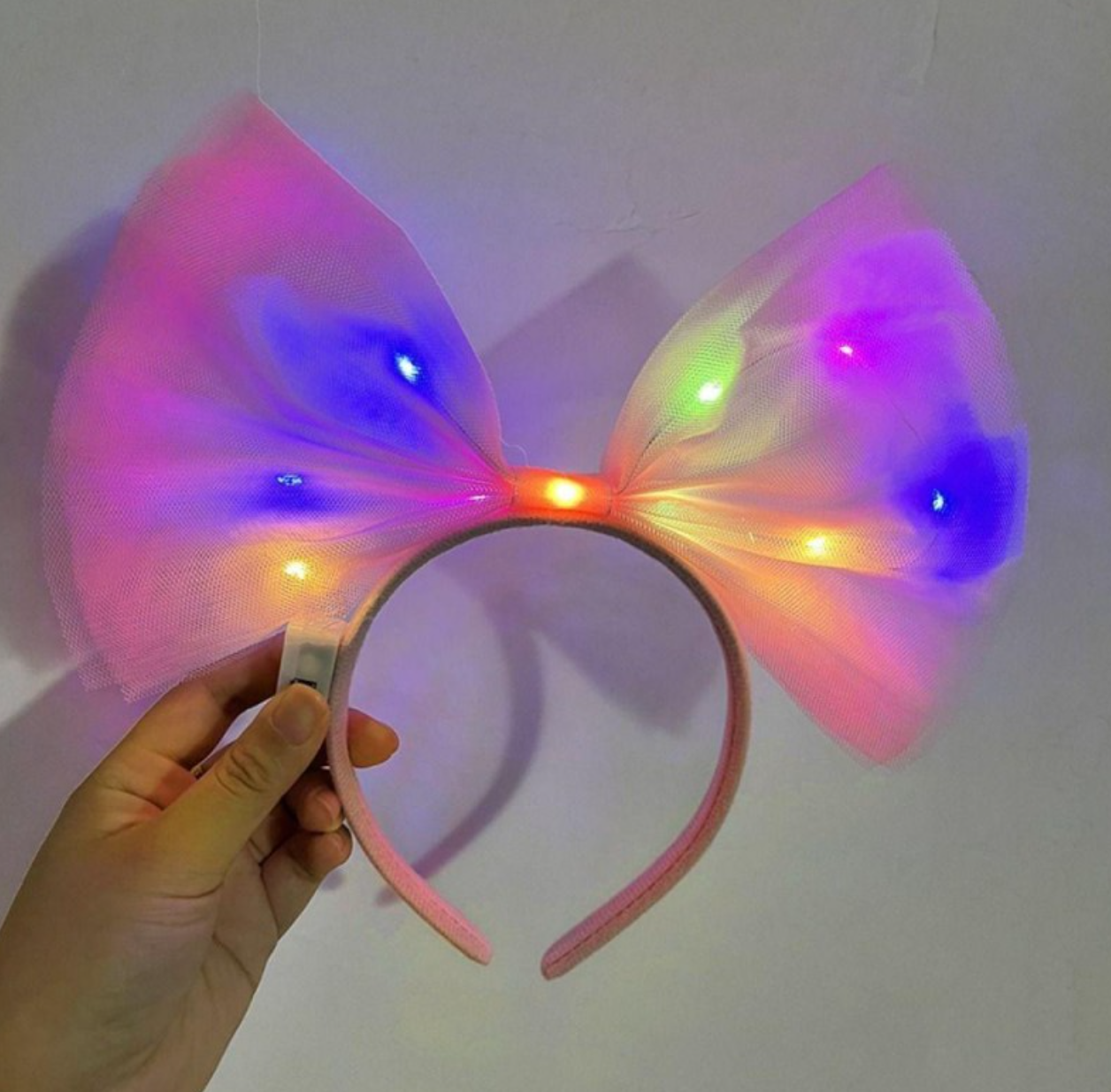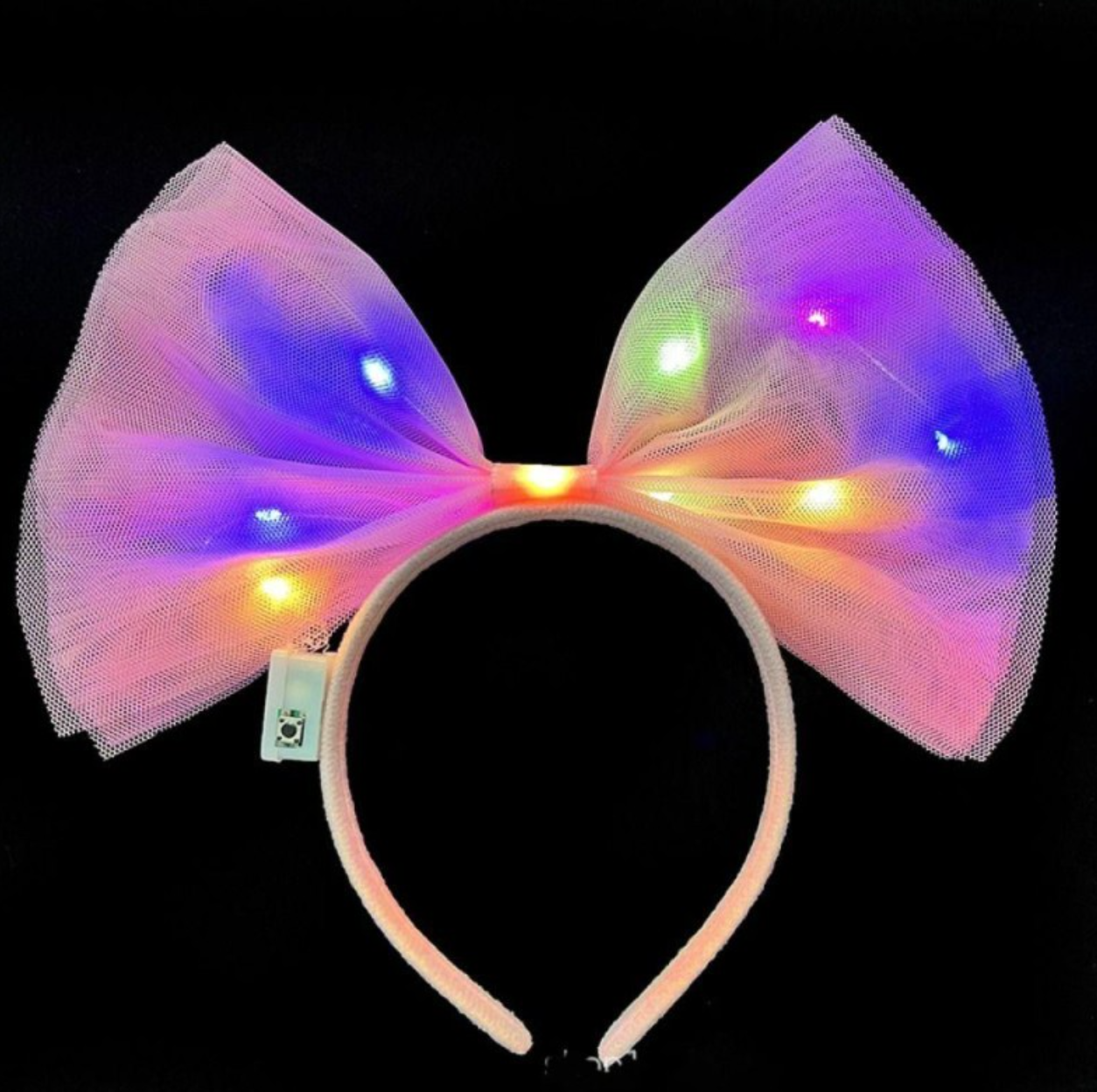 - 1 adet rengarenk LED ışıklı fiyonklu tül parti tacı (25x25 cm)