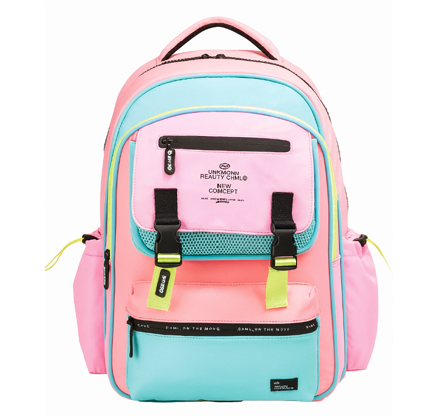 Uncommon Beauty CHML® New Concept sırt çantası, canlı pembe, mavi ve sarı detaylarıyla tarzınızı yansıtırken, geniş iç hacmi ve çok bölmeli tasarımıyla okul, seyahat ve günlük kullanım için mükemmel bir seçimdir. Dayanıklı malzemeden üretilmiş olup, fermuarlı ve tokalı ön cepleri sayesinde eşyalarınızı düzenli bir şekilde saklayabilirsiniz. Yan cepler suluk veya küçük aksesuarlar için idealdir. Rahat omuz askıları ile uzun süreli kullanımda konfor sağlar.