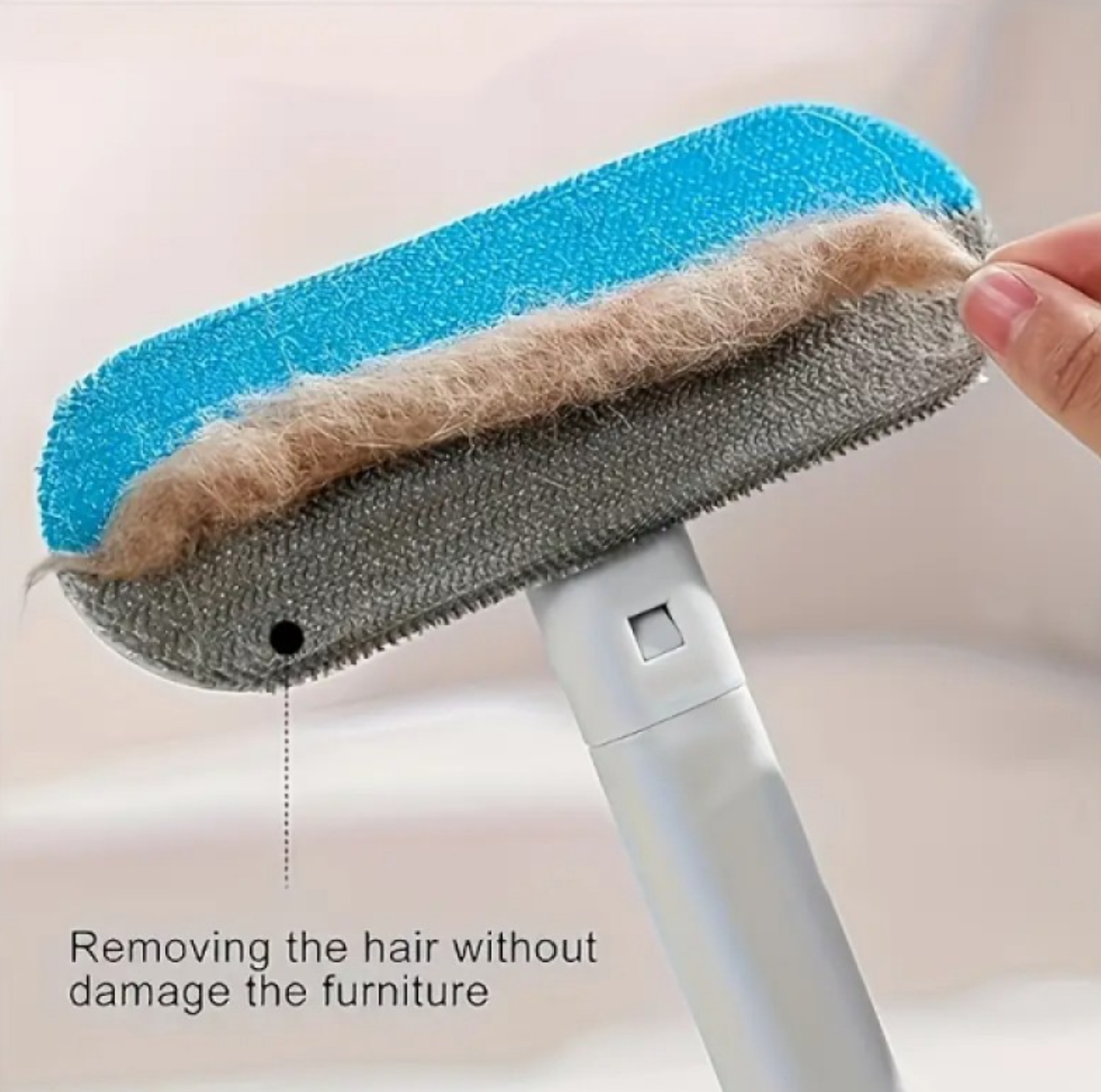 Uzun saplı evcil hayvan tüy temizleme fırçası, koltuk, halı, yatak, perde ve diğer kumaş yüzeylerde biriken kedi ve köpek tüylerini zahmetsizce temizlemeniz için özel olarak tasarlanmıştır. Dayanıklı malzemesi ve ergonomik uzun sap yapısı sayesinde eğilmeden, yorulmadan geniş yüzeyleri hızlı bir şekilde temizleyebilirsiniz. Çift taraflı mikrofiber fırça yüzeyi, tüyleri etkili bir şekilde toplar ve fırçanın temizlenmesi son derece kolaydır. Kaymaz sapı rahat bir tutuş sağlar ve uzun kullanımda bile elinizi yormaz. Sapındaki daha küçük fırça ile kıyafet ve daha dar yüzeylerin temizliğine kolaylık sağlar. Hem evcil hayvan sahipleri hem de hijyen düşkünleri için ideal bir çözümdür.