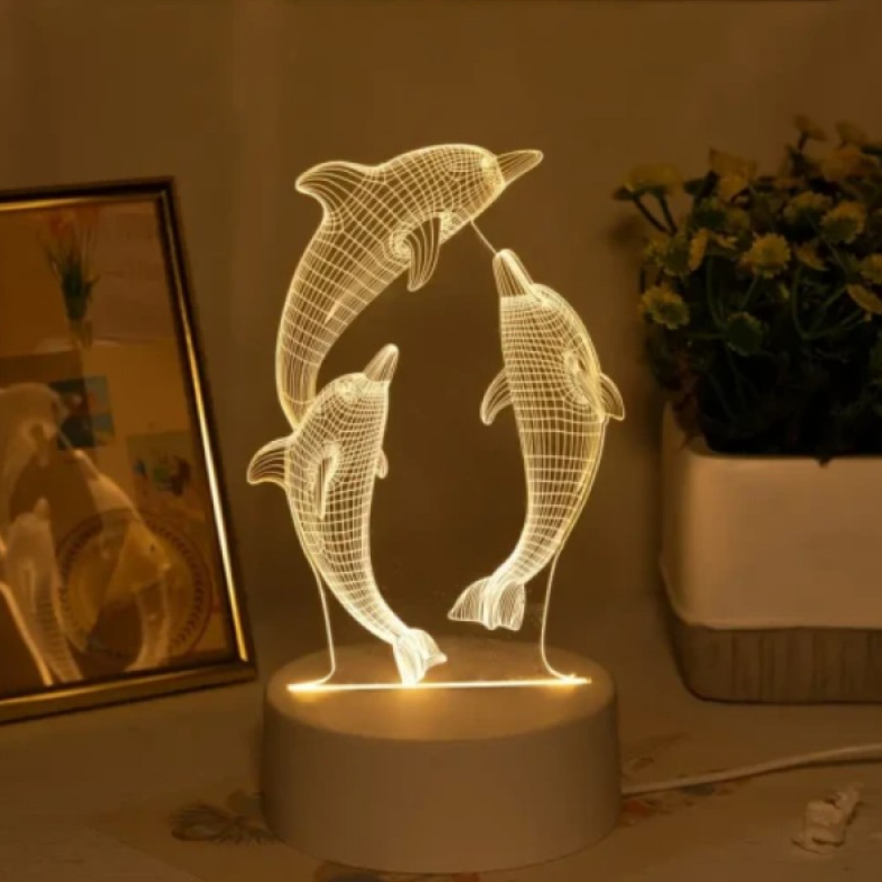 Yunus tasarımlı gece lambası, estetik ve modern çizgileriyle dekoratif aydınlatma arayanlar için ideal bir üründür. 3 boyutlu optik illüzyon etkisi yaratan özel akrilik paneli sayesinde gece boyunca huzurlu ve yumuşak bir ışık sunar. Özellikle çocuk odaları, yatak başları veya çalışma masaları için tercih edilen bu lamba, düşük enerji tüketimi ile uzun süreli kullanım sağlar. USB kablo bağlantısıyla çalışır ve ambiyansa uygun aydınlatma imkânı sunar. Zarif yunus figürleriyle tasarlanan bu lamba, hem gece lambası hem de dekoratif obje olarak kullanılabilir.